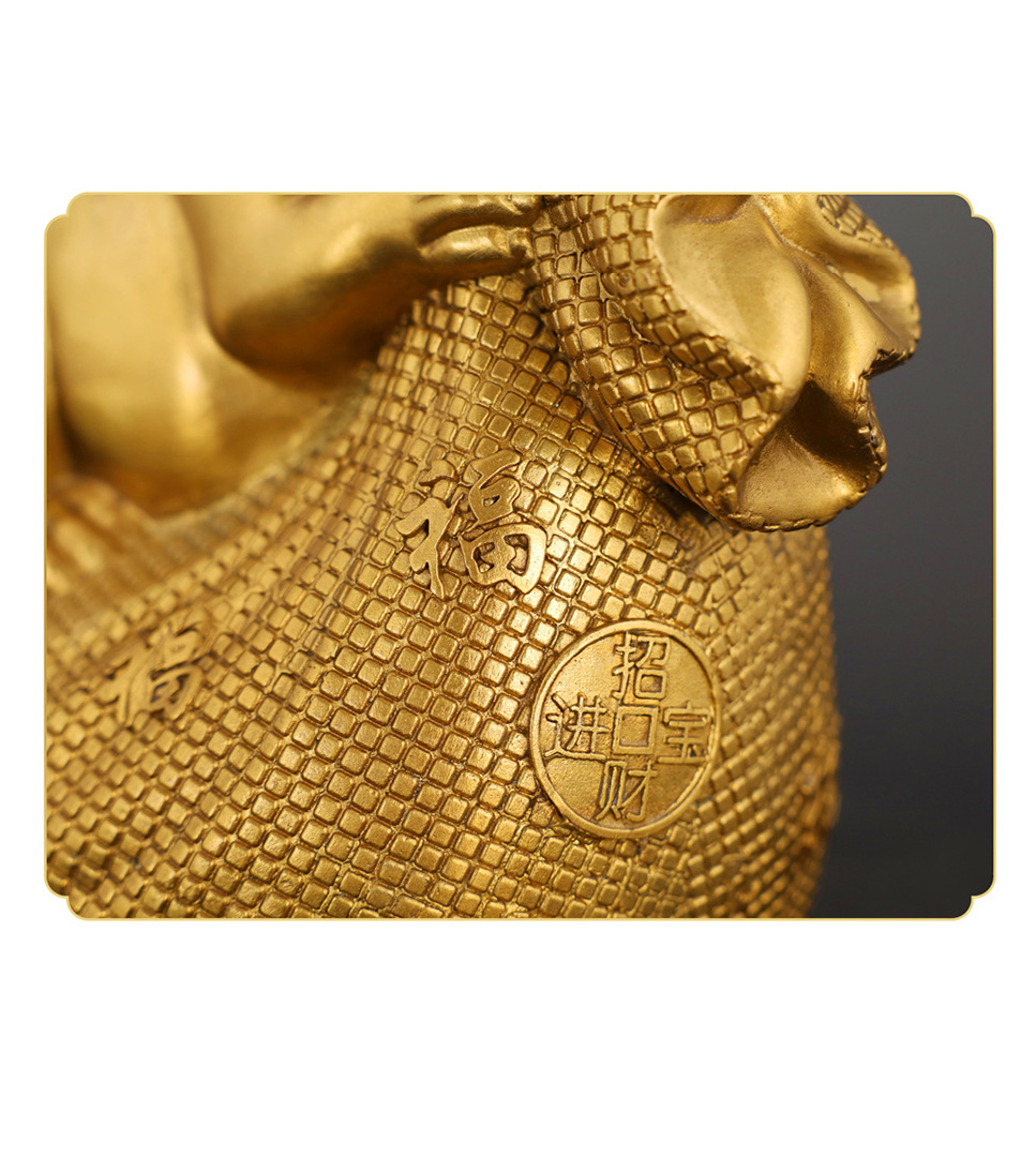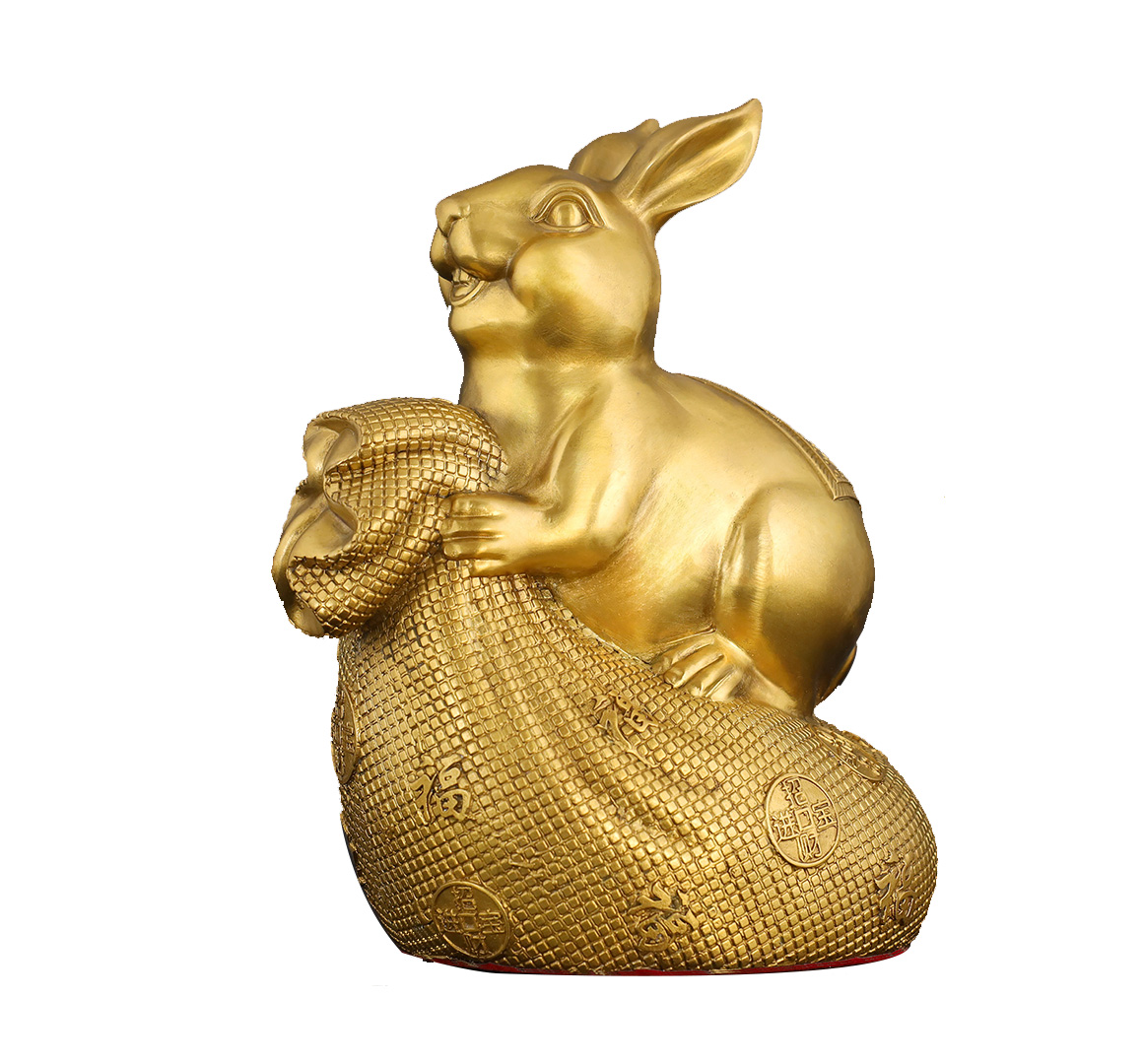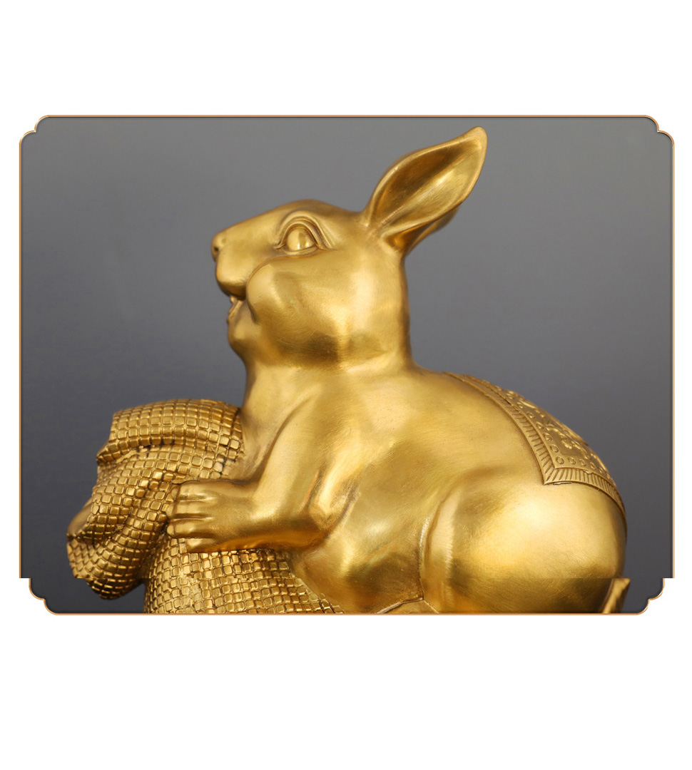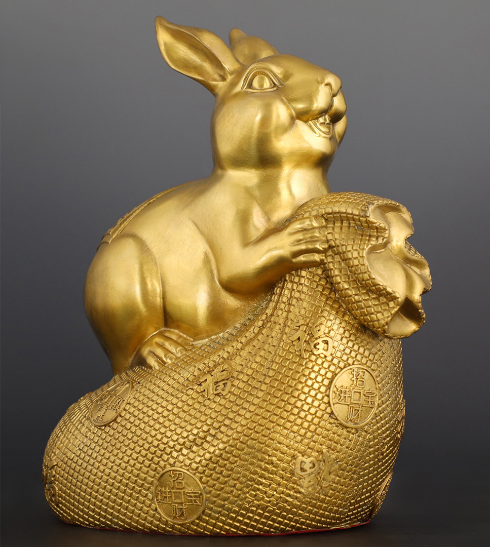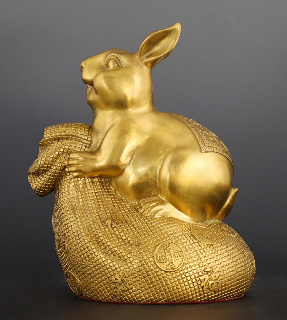 - Cast in high-purity brass and polished to a radiant golden sheen, the piece balances smooth curves (the rabbit’s rounded form) and intricate textures (the money bag’s weave), embodying traditional craftsmanship with modern elegance.